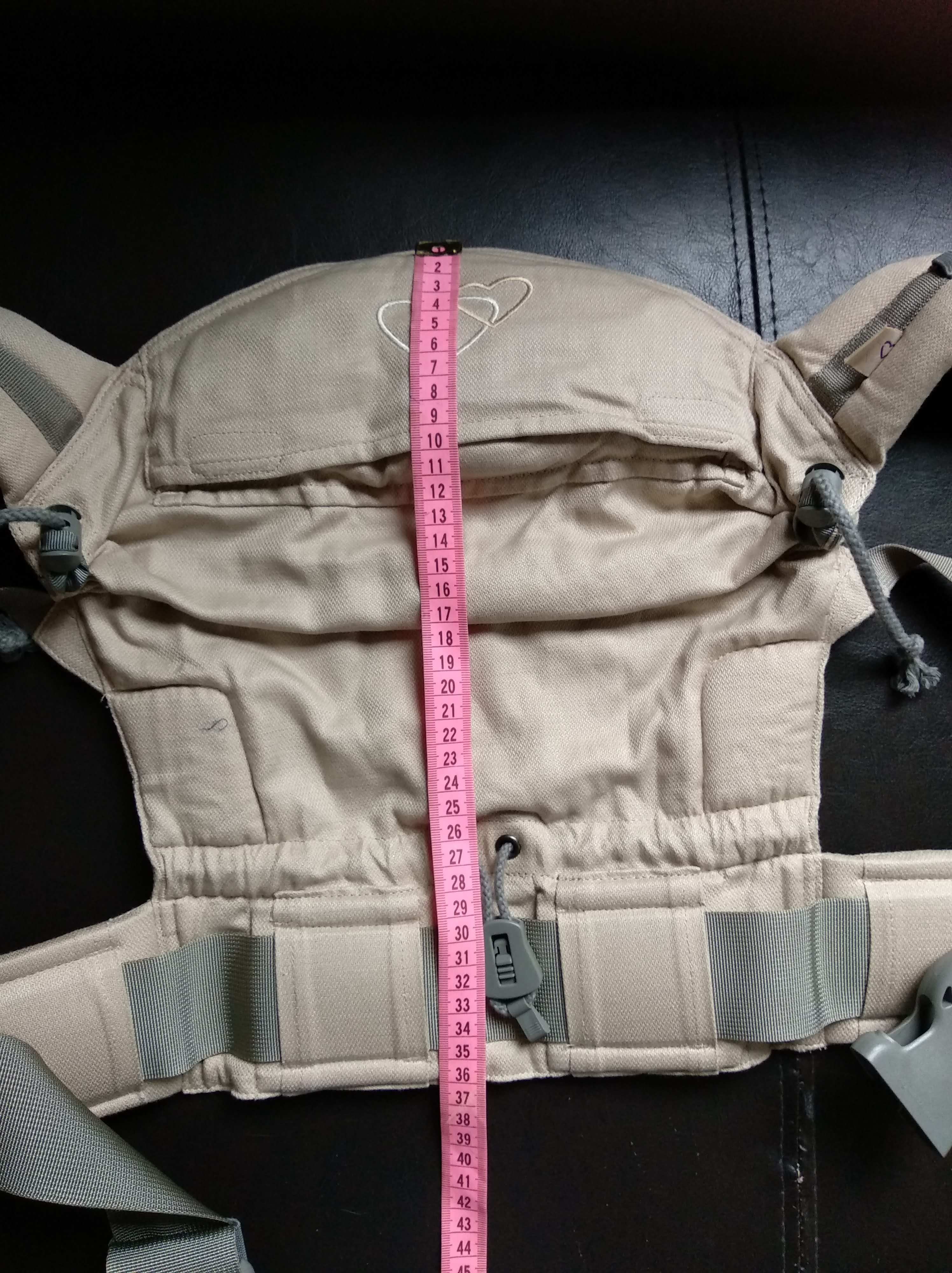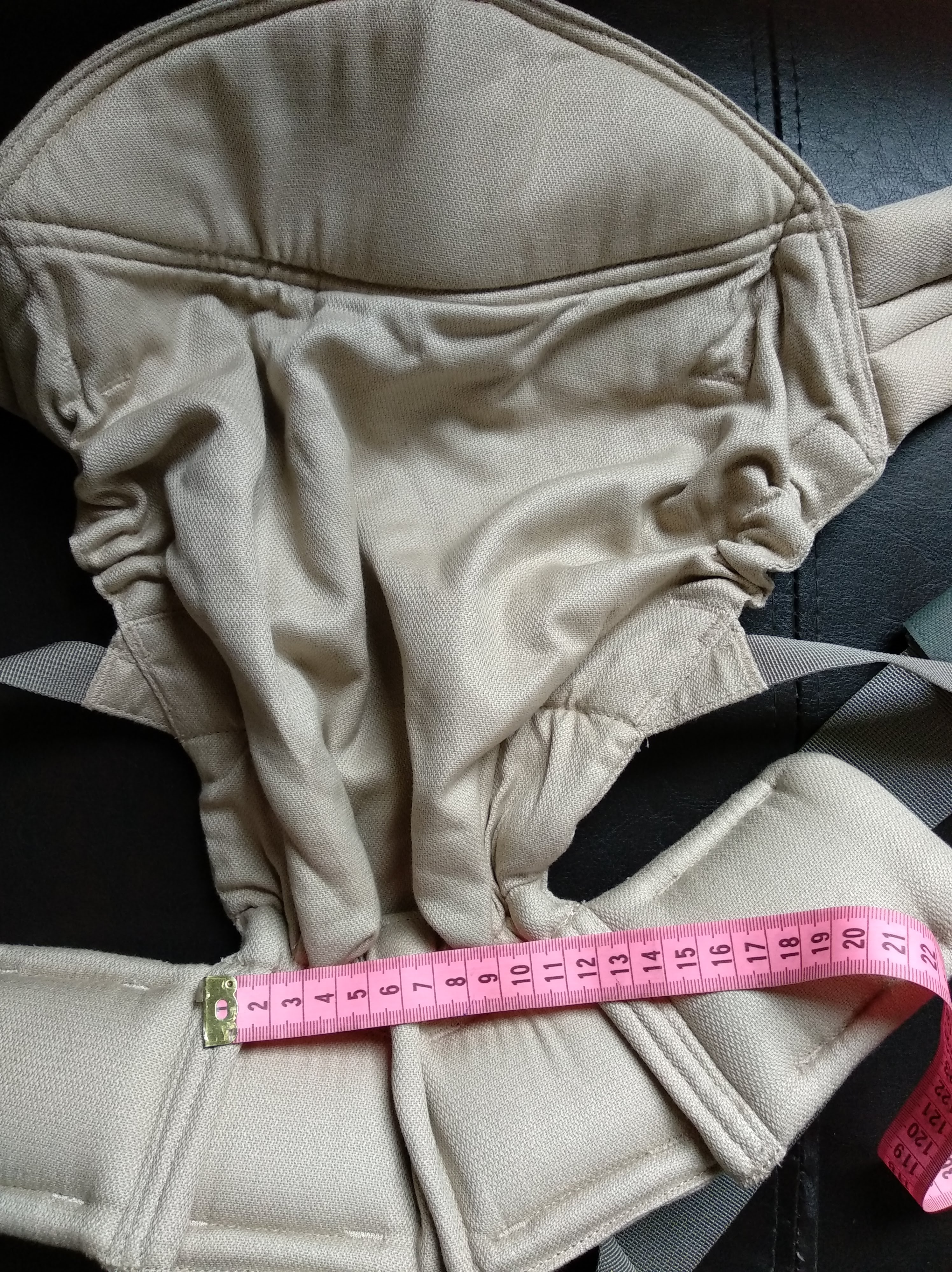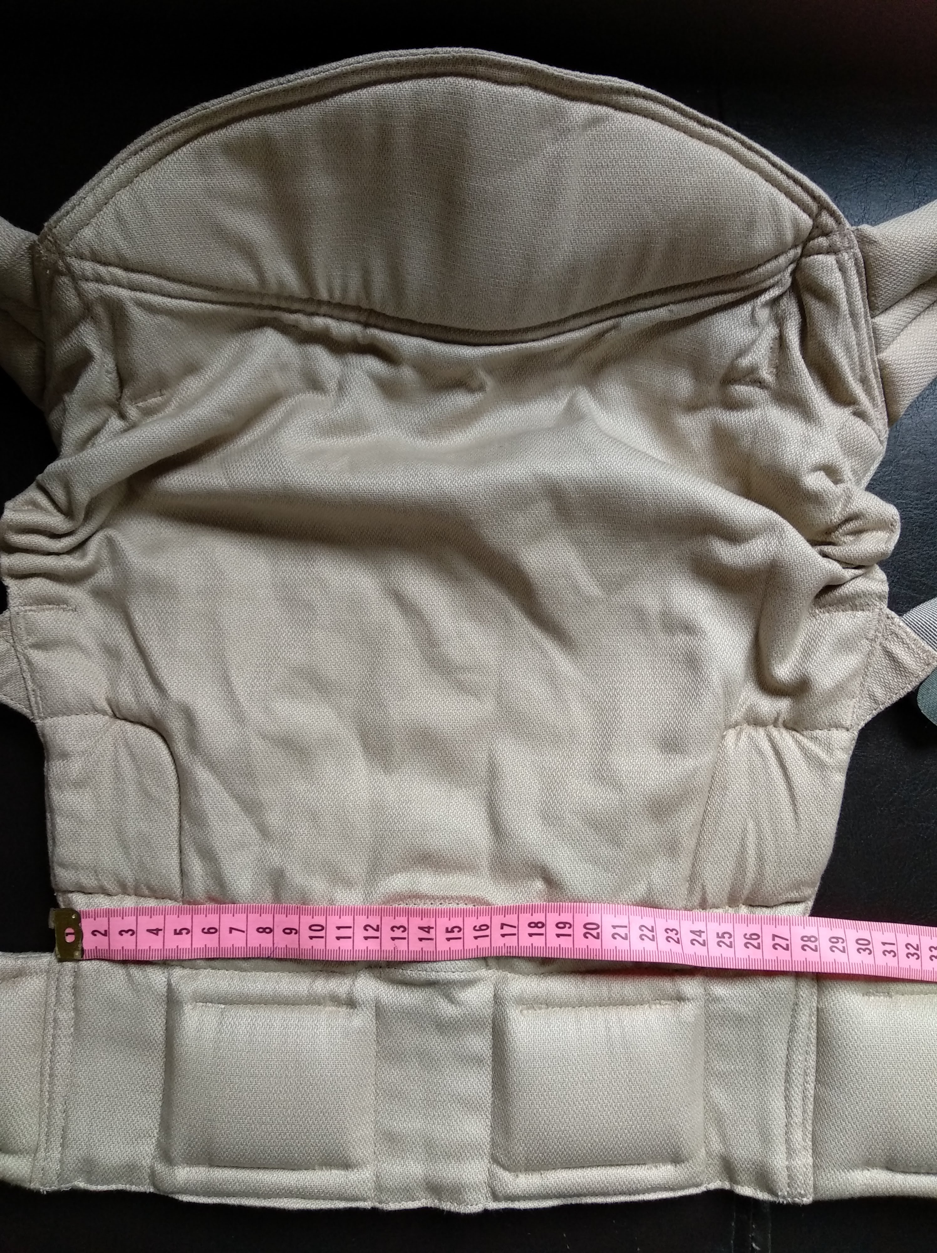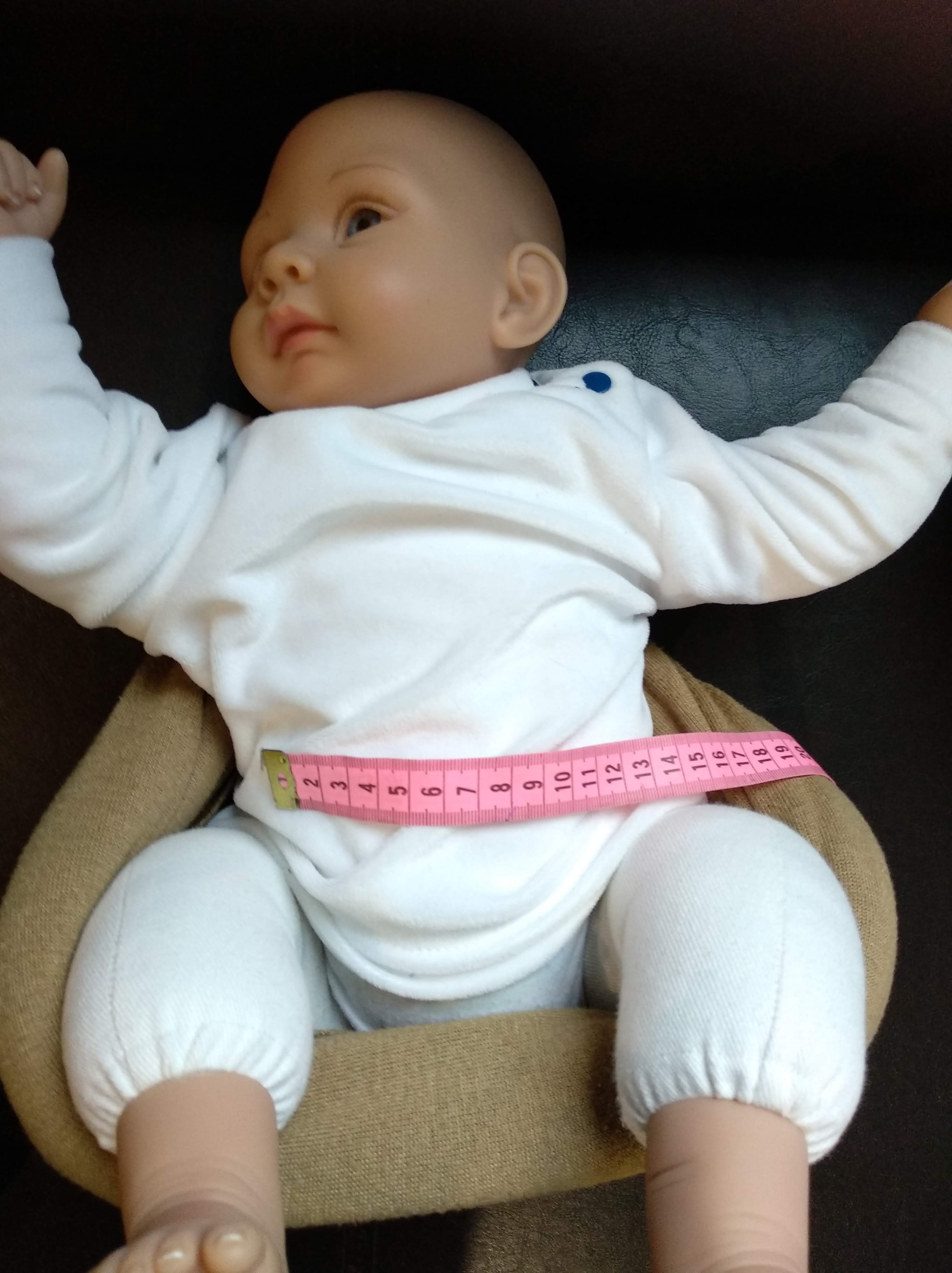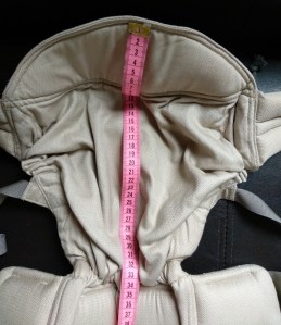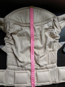 * 1ère bonne surprise, la largeur du tablier déterminant l’écartement des hanches de votre enfant est plus que respectée pour un nouveau-né. (j’ai même poussé le test avec mon poupon gabarit prématuré 😉 )